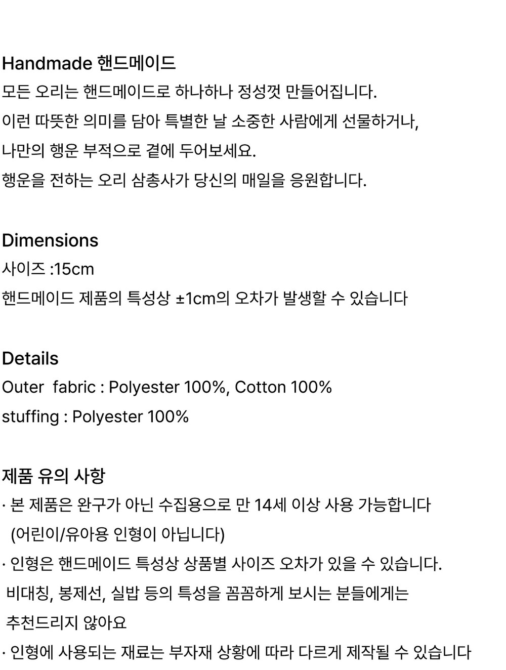 · 1:1 오더로 진행되어 상품 준비 중 단계에서 주문취소가 불가합니다. 이 점을 유의하시어 신중한 구매를 부탁드립니다