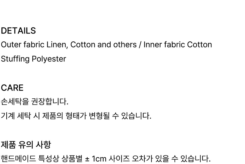 · 1:1 오더로 진행되어 상품 준비 중 단계에서 주문취소가 불가합니다. 이 점을 유의하시어 신중한 구매를 부탁드립니다