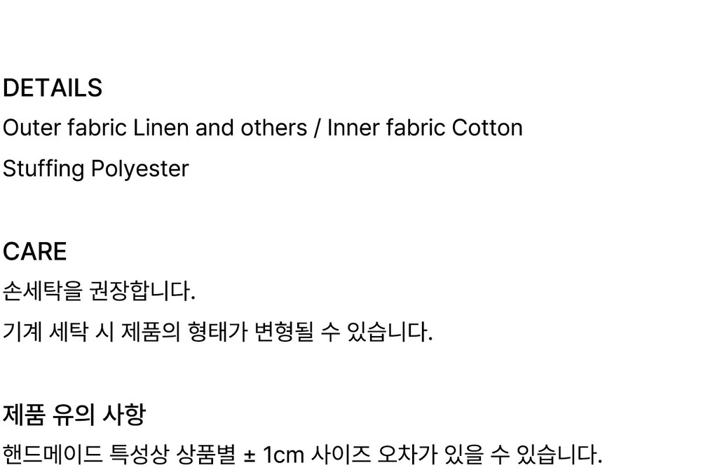 · 1:1 오더로 진행되어 상품 준비 중 단계에서 주문취소가 불가합니다. 이 점을 유의하시어 신중한 구매를 부탁드립니다